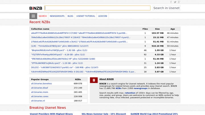 BiNZB est un nouveau service NZB qui comporte de nouvelles fonctionnalités qui en font un moyen rapide et fiable d’obtenir des fichiers NZB pour le contenu que vous souhaitez. Il est conçu pour se connecter via un accès NNTP payant et scanne tous les groupes de discussion binaires.