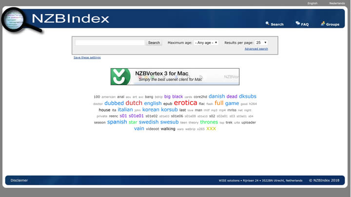 NZBIndex est un moteur de recherche Usenet basé sur le web qui offre une interface assez simple et contient tous les outils de recherche web que vous avez utilisés. Vous devez entrer un mot-clé, cliquer sur « Recherche », et il scanne 888 groupes de discussion les plus populaires en une minute. Il s’agit d’un moteur de recherche intelligent qui dispose d’un ensemble de filtres de recherche robustes.