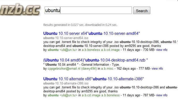 Lorsque le résultat de la recherche est renvoyé, les utilisateurs peuvent lire le fichier d’information s’ils l’ont inclus et visualiser des aperçus d’images. NZB.cc est également disponible en version gratuite et commerciale. Tous les utilisateurs gratuits sont limités à cinq téléchargements de NZB par jour. L’utilisateur professionnel, quand à lui, peut accéder à son service sans aucune limitation.