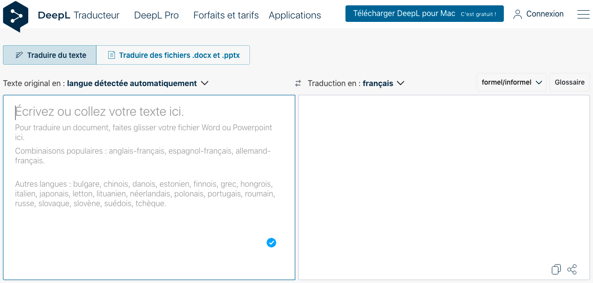 Avec « DeepL », les langues suivantes sont traduites dans les deux sens : allemand, anglais, français, espagnol, italien, néerlandais, polonais, portugais et russe.
