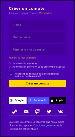 Il est recommandé d’avoir un compte avant d’effectuer une commande sur eneba. Pour créer votre compte sur eneba.com, voici les étapes à suivre :