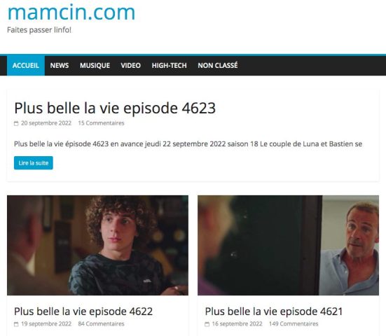Actuellement, le site s’appelle toujours mamcin et se consacre essentiellement à la diffusion de la série Plus belle la vie.