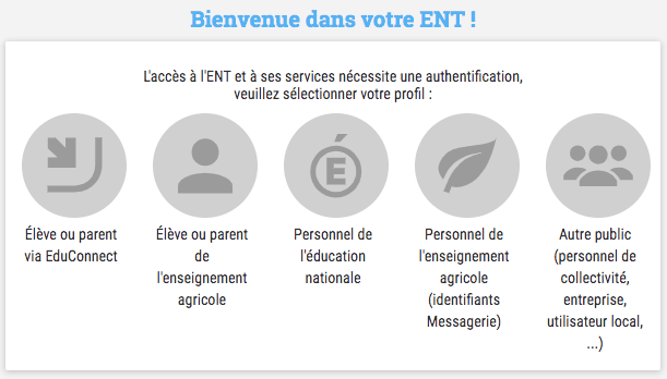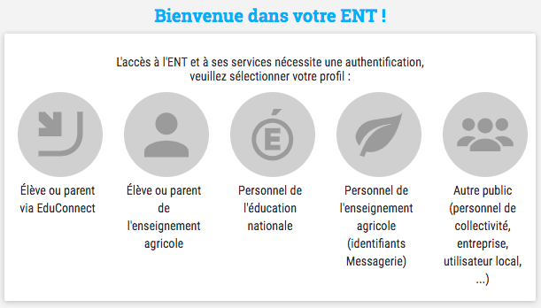 - choisir son profil parmi : élève, parent, les personnels de l’Éducation Nationale, les personnels de l’Éducation Agricole ou autres ;