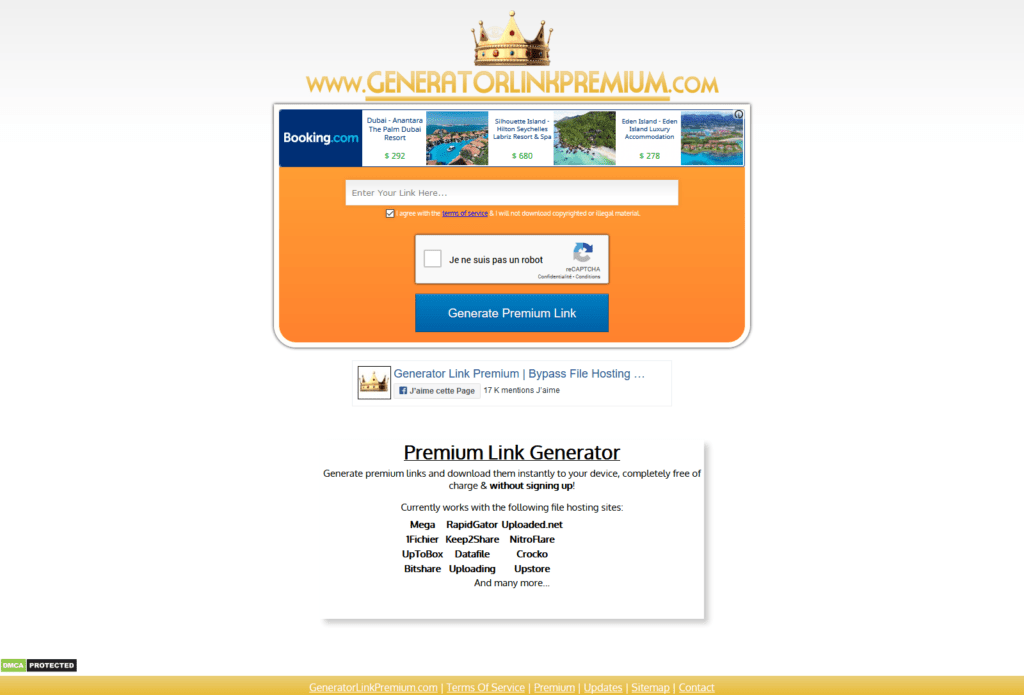 Generator Link Premium est un site qui propose à ses clients de créer des liens avec des fonctionnalités premium permettant de télécharger des fichiers. Au lieu de payer le prix fort sur tous les sites d’hébergement pris en charge, les clients peuvent utiliser Generator Link Premium et bénéficier de la même vitesse ou des mêmes fonctionnalités. Les services sont gratuits même avec des vitesses premium nécessitant un paiement de sites individuels.
